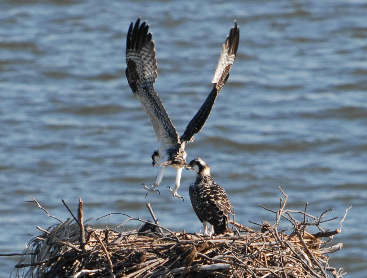 With the breezy southerly winds the last two days, the chicks have been able to practice and exercise their wings a lot, with some great lift-offs going from one side of the nest to the other.