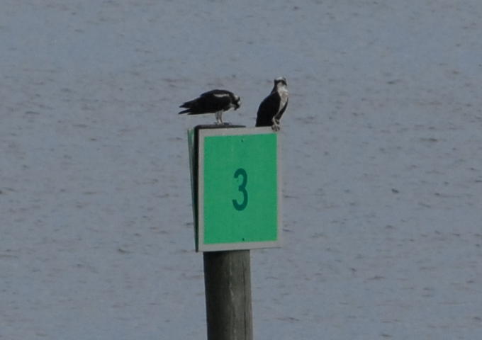 It’s hard to say exactly when they begin to fish for themselves, each one is different, but maybe we’re seeing one of the their first successes! It is a fact that the parents will begin to feed the chicks less often to encourage their instinct to fish and feed themselves. A couple evenings ago, a chick was quite loud calling and looking over to the marker where a parent and the other chick were resting. That chick was also crying loudly, yet the parent just sat there and continued to ignore either one of them. Maybe the parent was trying to encourage that instinct?