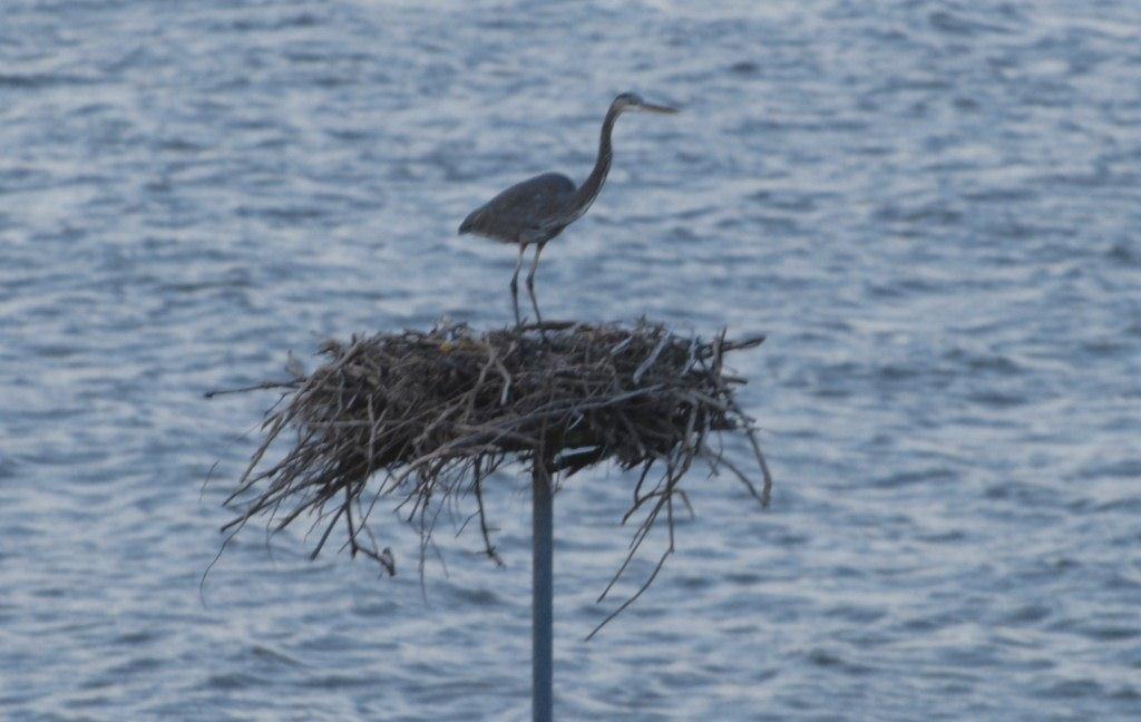 With a bit of sadness, it appears the end of our osprey family’s 2010 season with us is here. Since my last posting, I haven’t seen our last chick since last Saturday, and dad Ollie not at all. These last two days my instinct has been telling me they have all four left for their migration south. This morning while the sun was rising, I found this visitor on the nest.