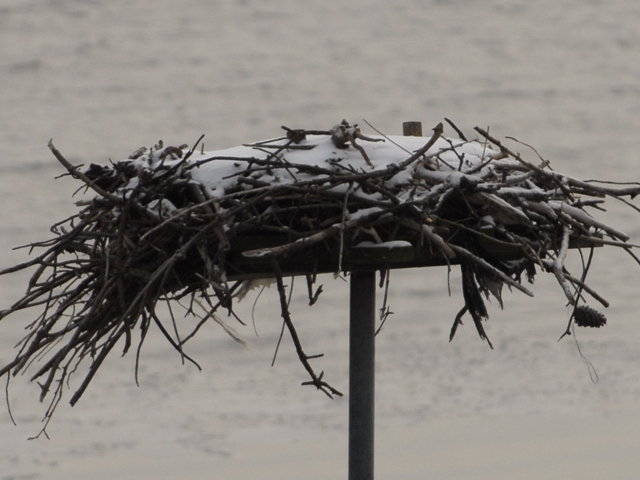 By late afternoon, we had about 1-2 inches of snow in the area….and on our osprey nest.