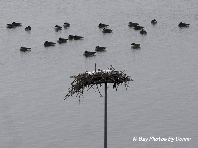 Yes, January’s been cold to us, but it doesn’t bother the present waterfowl, to them it is probably like a warm vacation from their northern summer home! We’ve had a lot of Canadian geese this month, sleeping right around the nest and community coves, swimming by, or actually coming on land in our community.