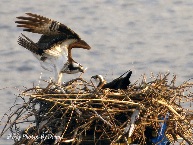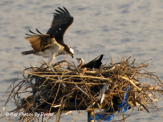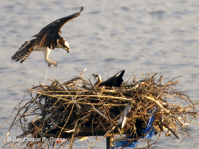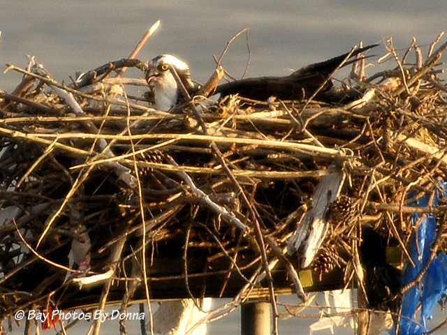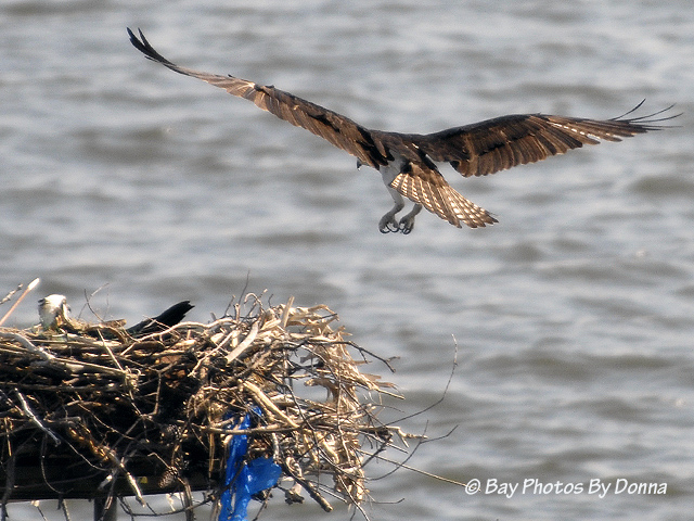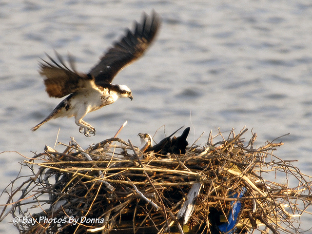 On some of the nicer sunny days, I captured some shots of the pair coming and going from the nest. I’ve also watched Olivia often take her breaks perched on Lipincott’s channel marker while Oliver assumes egg duty, all the while keeping his head up and an eye on Olivia. Such a wonderful protective mate!