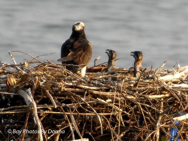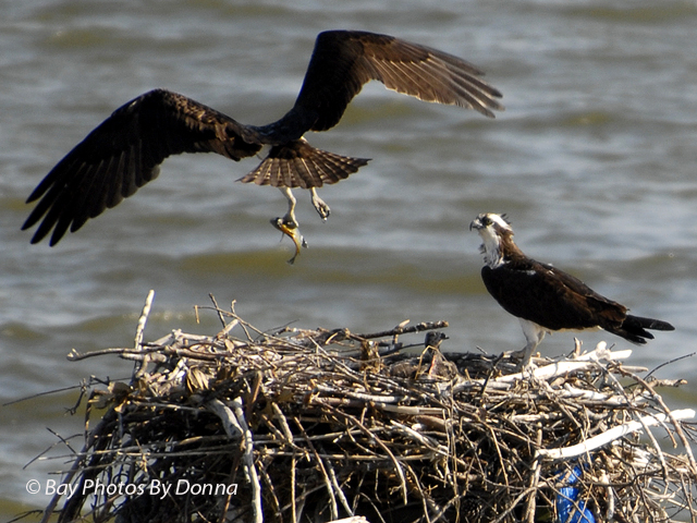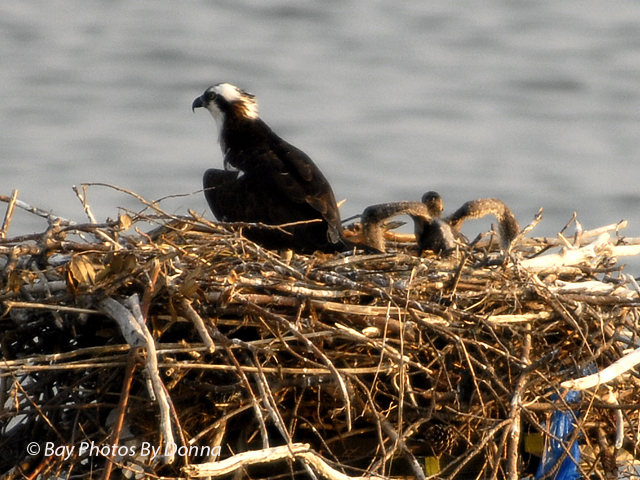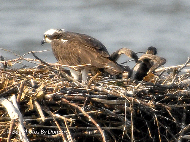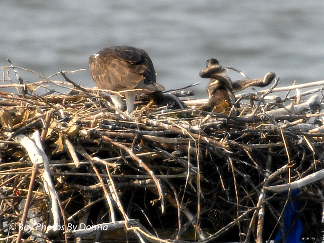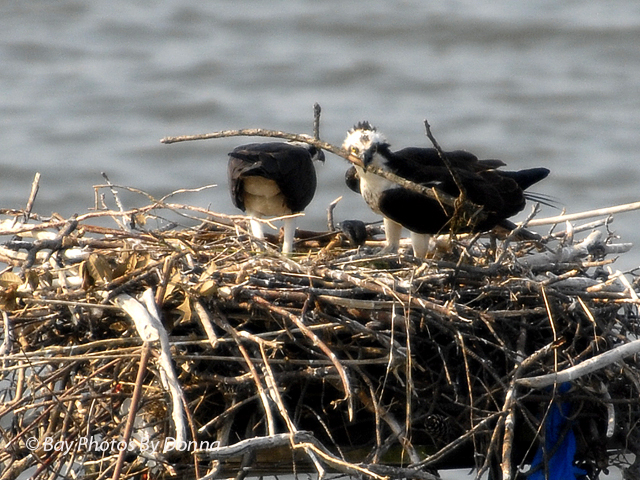 Dad Oliver has been keeping up his duties of restrengthening the nest with more sticks along with a steady supply of fish.