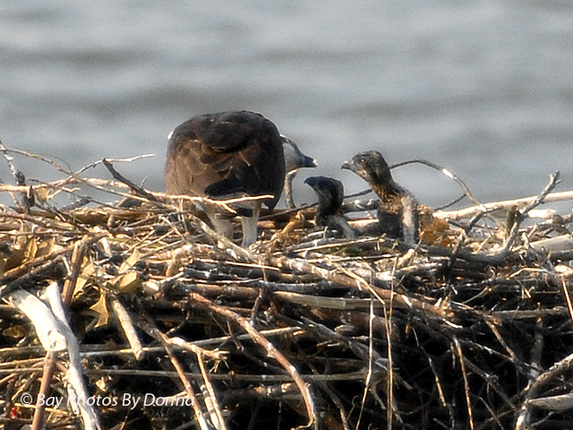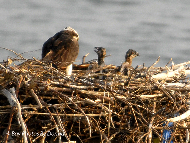 Although the weather was warm, I hope everyone had a great holiday weekend! I was able to capture some photos of our little osprey chicks today that show how much bigger and stronger they are in just a few more days. They are able to move around more easily within the nest and are also very interested in being up and looking over the side.