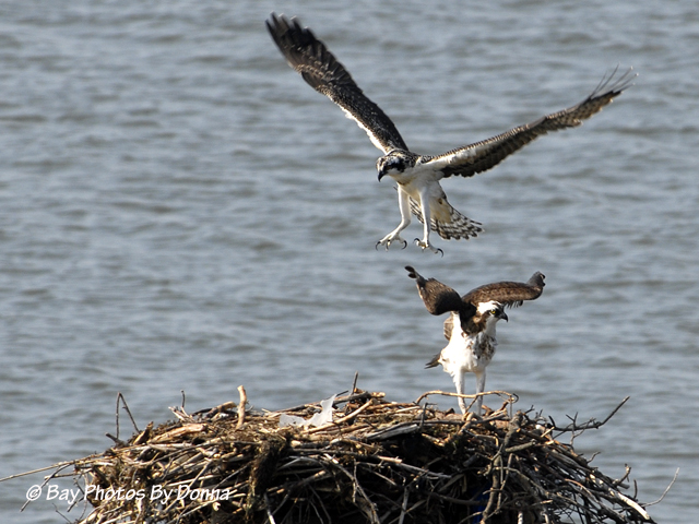 It’s officially, both chicks have fledged…..finally! 🙂 I was beginning to wonder if they were flying all night and resting during the day to keep us from knowing, lol. Early this morning, was just the usual, a feeding, some wing-flapping with lift-offs, a nap. I kept my eye on the nest most of this Saturday morning and about 9:15 I saw one missing from the nest. I searched and didn’t see the chick flying. Within 5 minutes I actually watched the second chick depart the nest. Here’s some highlights of his flight circling and then returning to the nest. Mom Olivia spoke to her young one the whole time, calling out with different sounds that weren’t the normal cries I’ve heard. She was giving tips and approvals maybe?