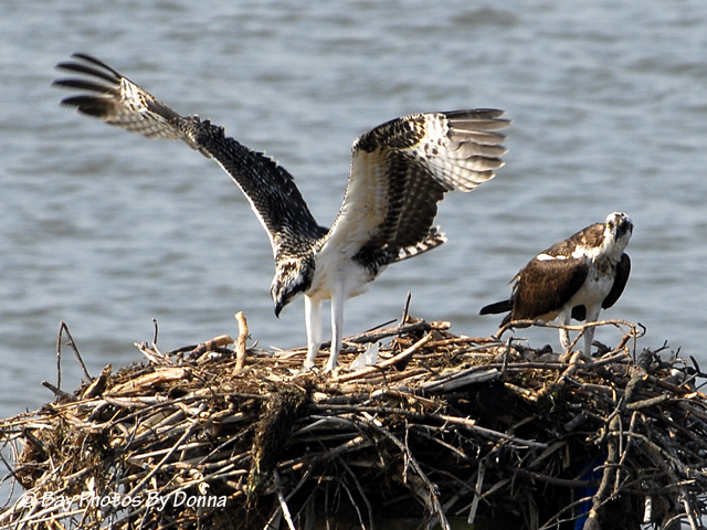I did a constant watch during the mornings and late afternoon/early evenings before today but didn’t see any missing chicks from the nest; so one or both of the chicks could have fledged a day or two earlier. I was prepared to post photos of some amazing 2-3 foot lift-offs from the last couple days. But this is more exciting, our osprey chicks’ lives has changed and they have so much more now to learn. Those wings need to learn control and maneuvering, while gaining much-needed strength as they soon learn to dive either for a fish or just to immerse themselves to cool off as the heat and humidity begins to rise this month and next.