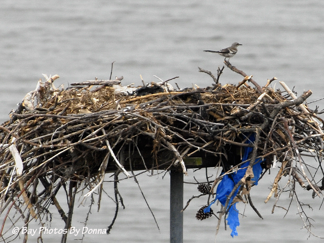 I bet Olivia doesn’t know about her house visitors and an intruder has laid claim to her nest. Although I’m sure Mr. Mockingbird would disappear immediately upon seeing a huge osprey coming directly at him to land.