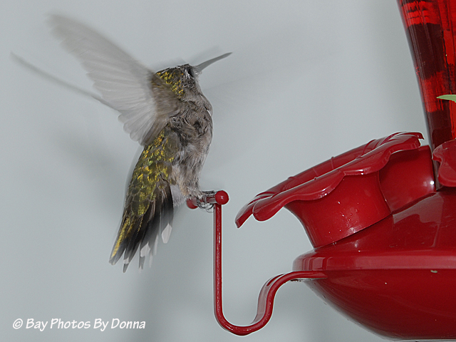But I did get to enjoy watching constant action at my hummingbird feeder. I must be sweetening the liquid just perfect, as they are emptying 8 oz. worth every 3 days. Here’s some of this evening’s photos while I watched and hoped for our osprey family to show up.