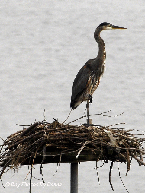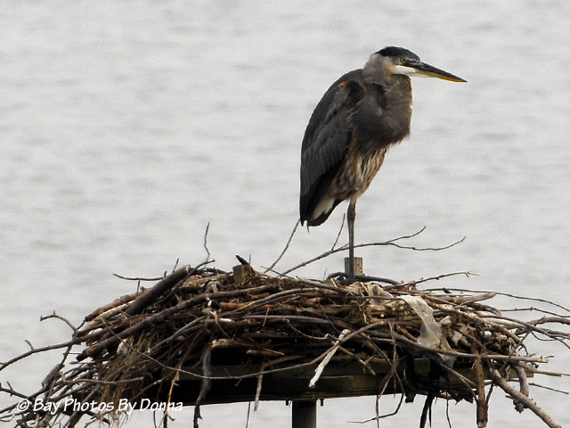 Last week I blogged about a Great Blue Heron who had taken over our osprey nest as a perch and the base of the nest as his fishing hole. He’s still with us daily along with the mallards!