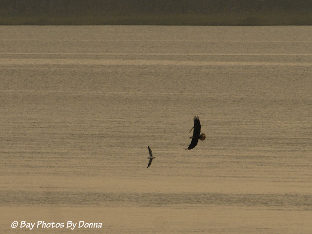 Immediately, several other gulls were chasing and trying to attack the eagle who was still chasing the one gull. The eagle quickly gave up and retreated to Kent Island, with the gulls still chasing him. I know eagles will eat ducks but gulls?