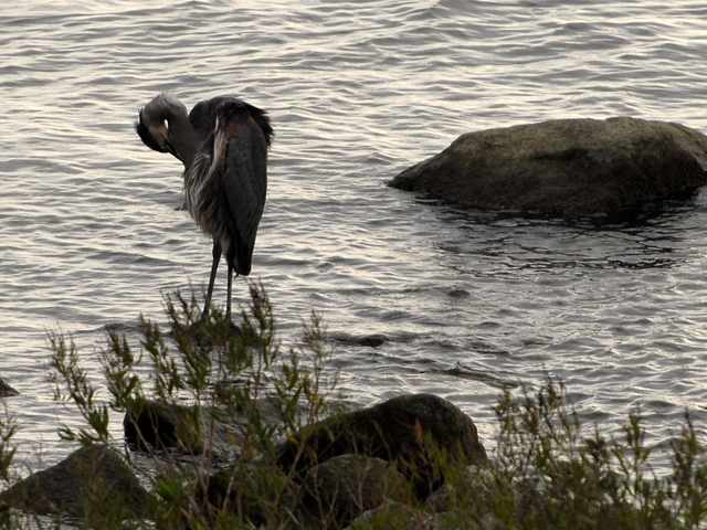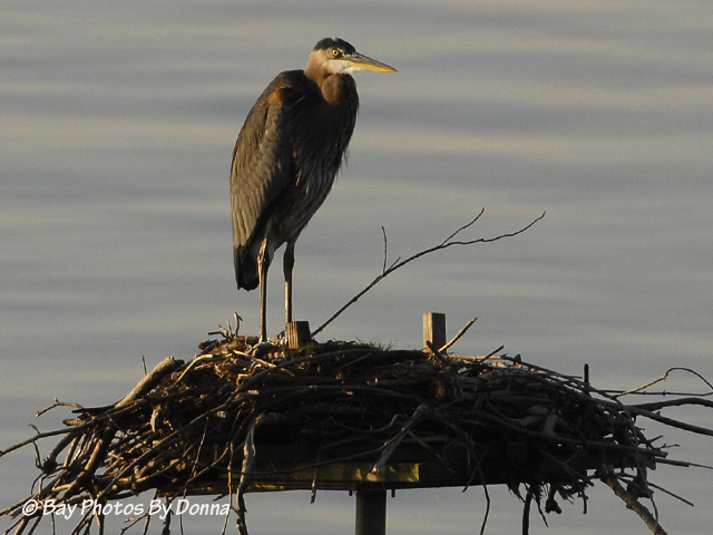 So sorry, spare time has evaded me these last couple weeks, but rest assured the photo-snapping didn’t stop and we’re back, Blake the Blue Heron and I. 🙂 To our enjoyment, Blake has continued to stay around and visit us. As in the past ten weeks, he still keeps his vigil, absorbing the warm sun rays or doing a little feather preening while on our osprey nest…..