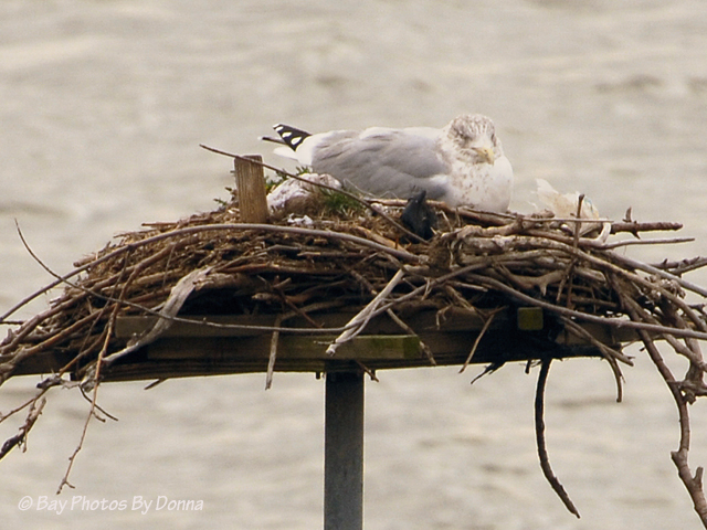 In addition, our infamous gulls have continued to visit our osprey nest. Both yesterday and today, one enjoyed perching and even some snoozing.