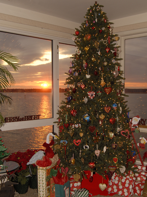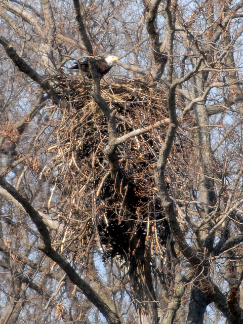 Weren’t they beautiful? So majestic in stature! The bald eagles in our area are now busy bonding with their partners and working on their nests for their upcoming breeding season when they will mate and lay eggs late January/early February. Their nests can be massive, reaching 10 feet in diameter, 12 feet deep, and up to two tons in weight. Here’s a photo of an eagle’s nest on nearby Wye River that can be seen by boat that my husband and I’ve been watching the last couple years. Now that’s a nest!