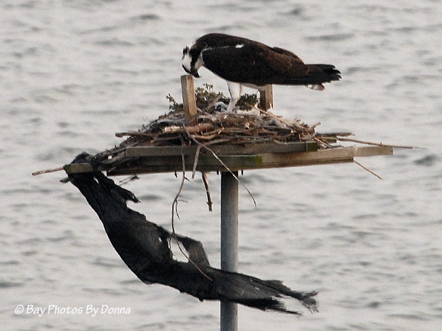 This morning before daybreak both Oliver & Olivia were perched on their Lippincott channel marker. By 7:00 am, both had disappeared. And then at 7:12 am I found a gull on the nest. No sight or sound of an osprey. It’s a bit odd to find another bird on the nest after our ospreys return, as Oliver & Olivia both are fierce about anything near theirs! Unfortunately, I had to leave for work. 😦 I wondered what activity might be occurring while I was away.