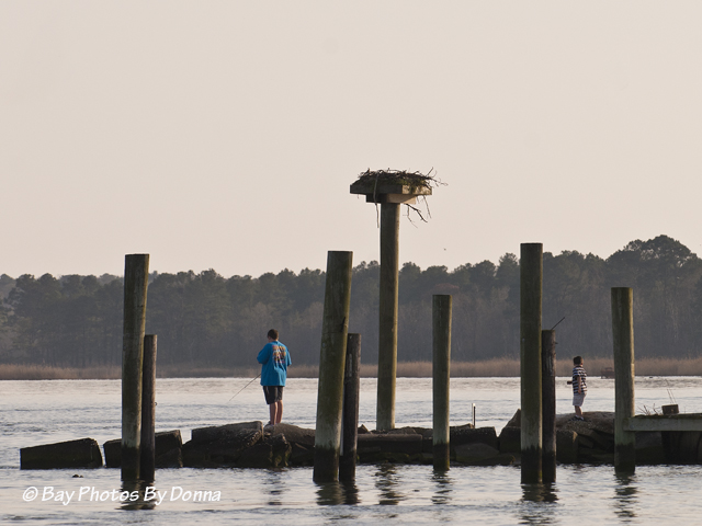 More osprey are arriving daily and several were about in the skies and nests along the waters. As we returned from our ride and reentered the Kent Narrows channel, we came back past the osprey nest that is located at Kent Narrows Yacht Club and Marina. Their nest is active every year and their osprey have returned. On our way out, the pair were on their nest; but when we returned, they had moved to the the KN green marker #9 in the channel across from their nest. A couple of kids were fishing below their nest.