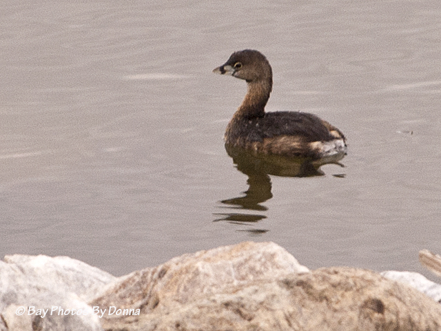 I was surprised to see the little ring-billed grebe had returned. He was all alone again.