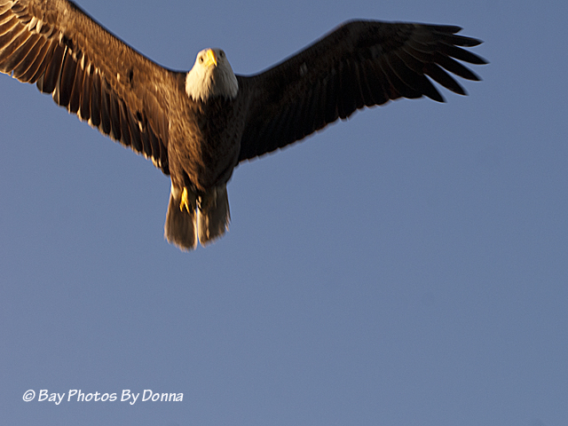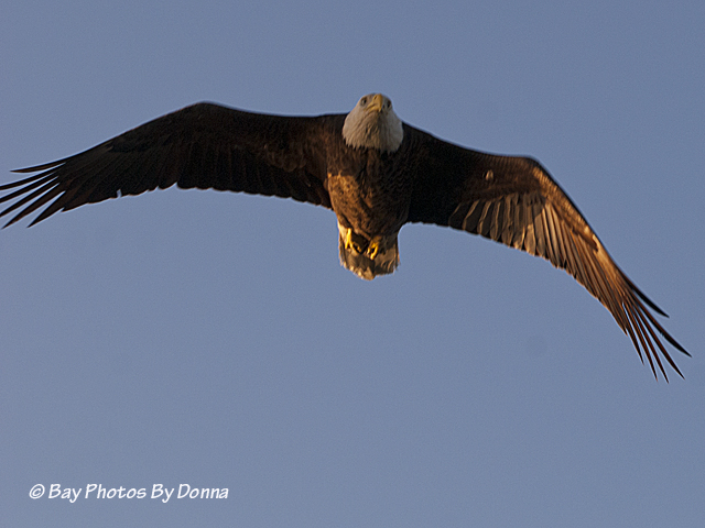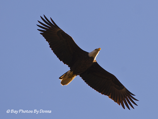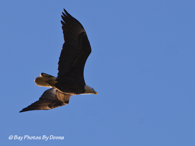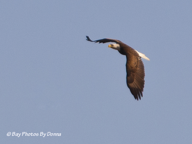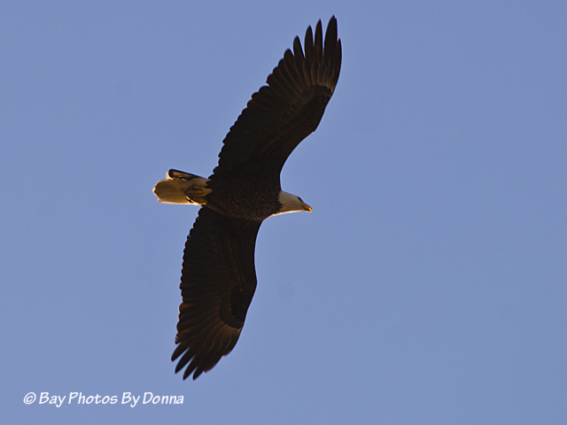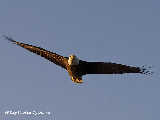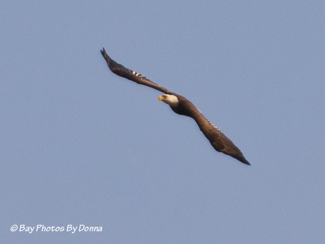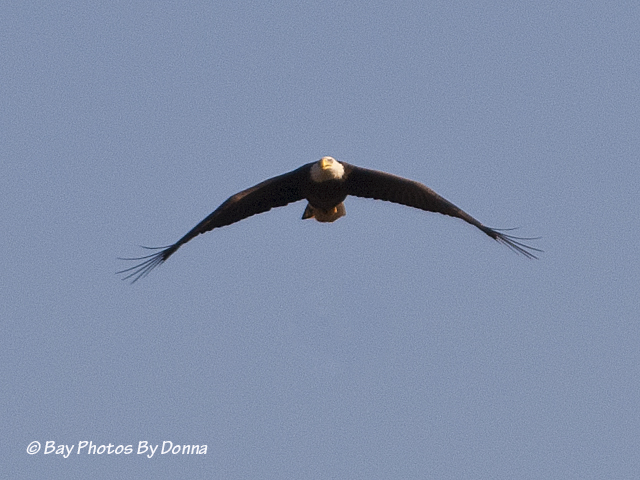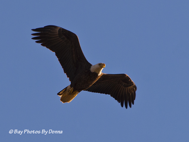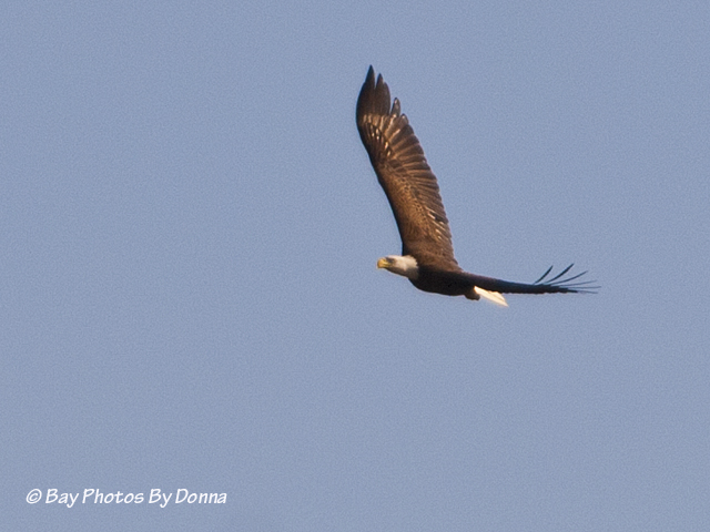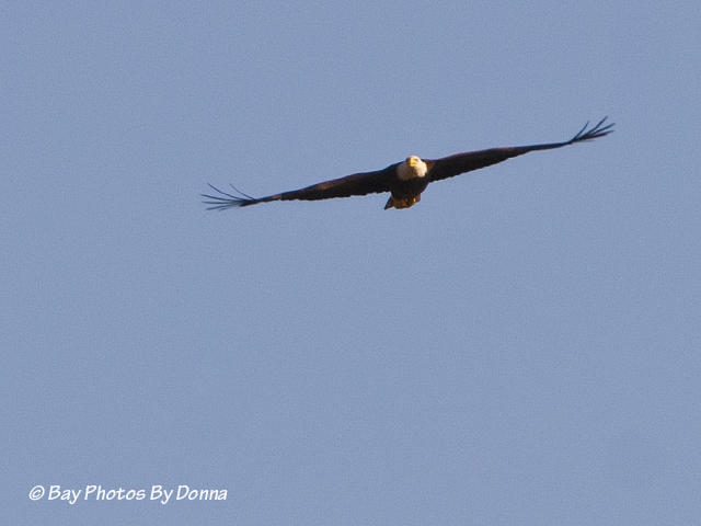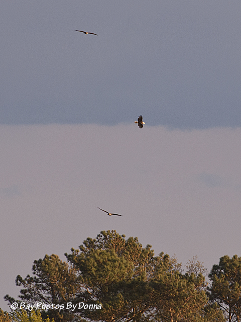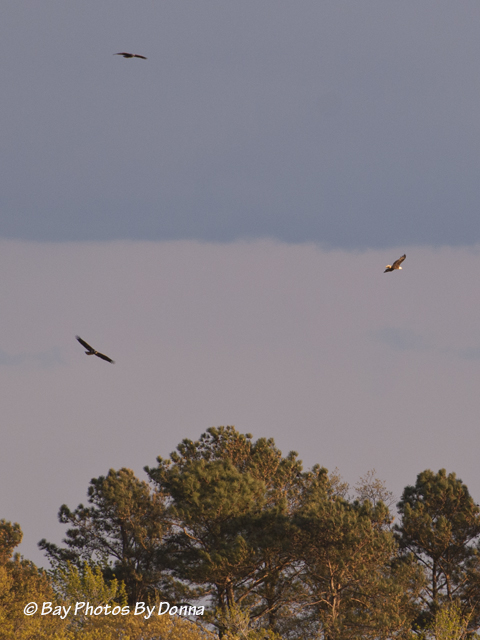 I haven’t seen an eagle in the last three days, but last Wednesday through Saturday I got to watch and photograph eagles soaring off to the left of my balcony over Marshy Creek and CBEC both mornings and evenings. With the sun rising or setting, what a way to start and end my days! At one time, there were five in the sky (three adult, two immature), which confused me. I’ve seen four at the most, being two adult eagles with their two juveniles, so I’m not sure where the fifth one came from. No one was aggressive with another, so I really couldn’t tell who was the ‘extra’. The most I could get in one shot were three….