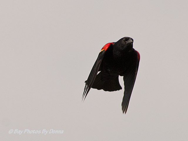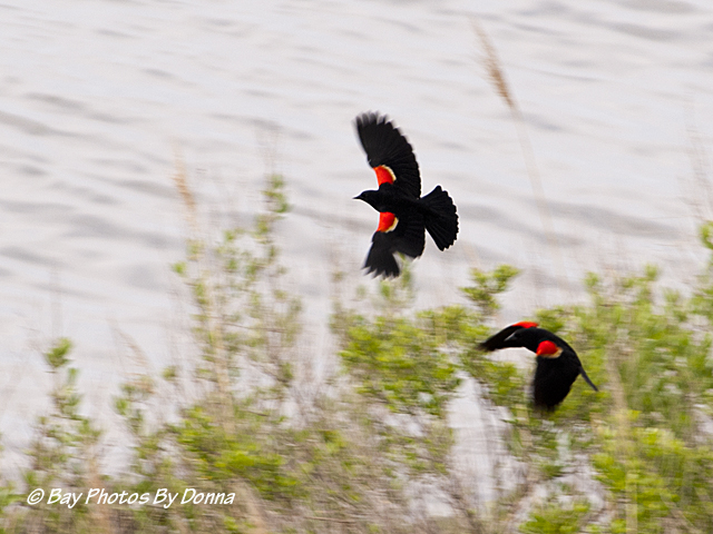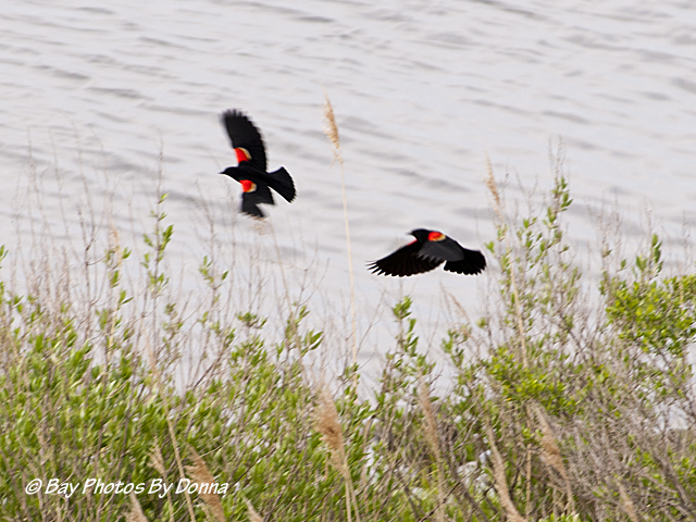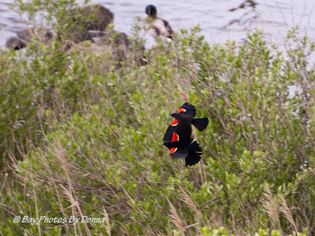 Back on my balcony, I’ve been working on trying to get the Red-wings in flight. They love to fly around the base of the osprey nest, in and out of the plants, stopping on occasion to perch and sing and flaunt. As with any bird in flight, it can be quite difficult and can take many MANY shots to get just one semi-good one. I did say many, right?!! LOL So here’s what few I thought weren’t too bad to share…..from the many I took!