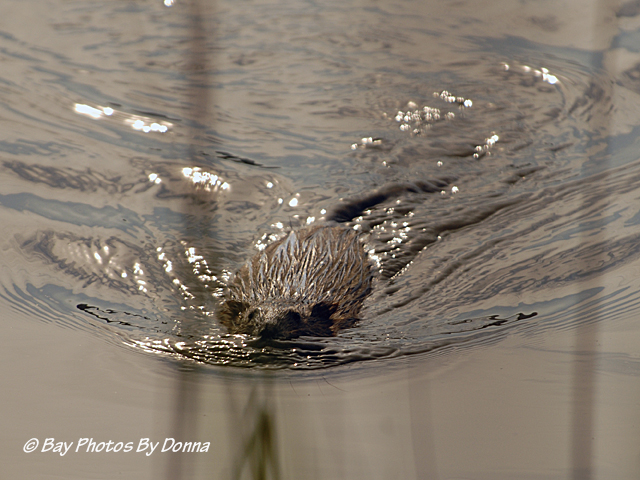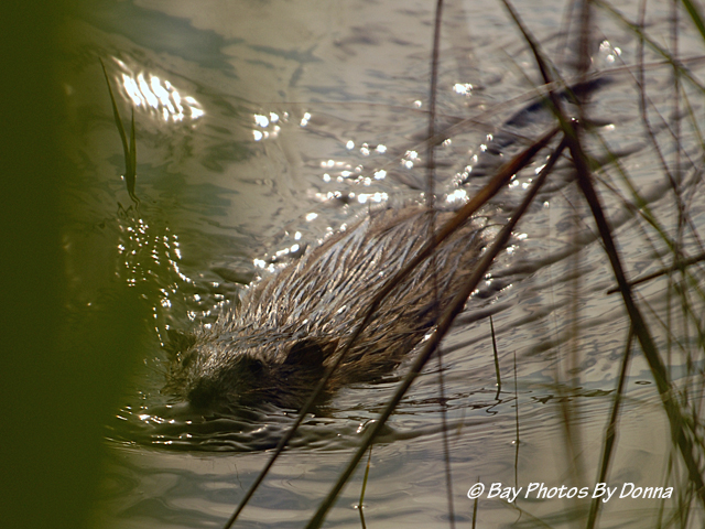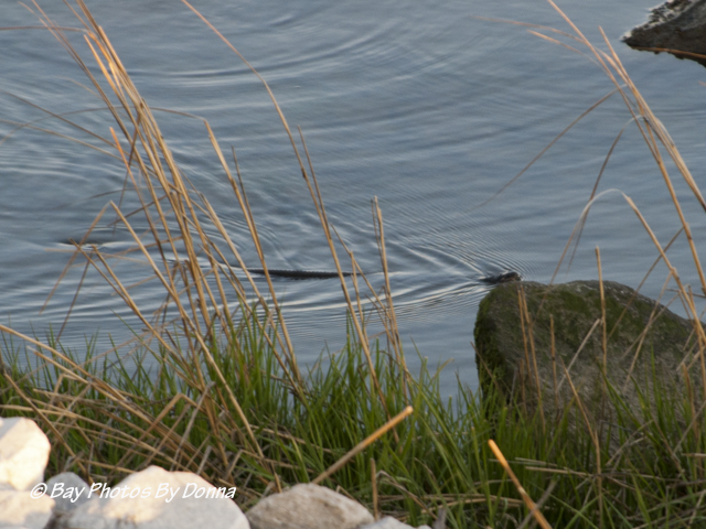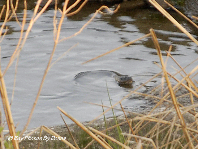 A few weeks ago I had spotted an otter alongside our property by the tennis courts from the highway but would miss him by the time I cruised into the community and over there. With him enticing me and the weather being quite nice early in the mornings, when cruising my loop before work, I’ve been getting out of the car and walking down alongside the marsh and peering through the brush. Finally, one morning I spotted one! He was across the water inlet and as I started taking some photos, he began to swim across and directly at me. 🙂 (UPDATE – now I’m questioning my ID on this critter, is he an otter or muskrat?) (NEW UPDATE – it was a muskrat!)