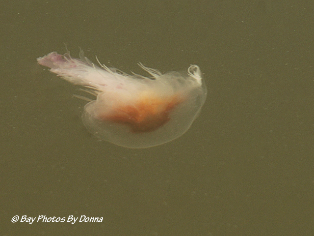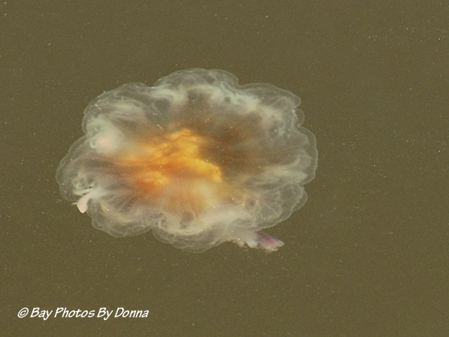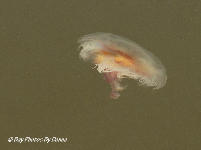 Finally, while photographing barn swallows and purple martins by the marina a few mornings ago, I happen to see a jelly fish in the water. As he rose to the top, the sunshine was shining nice on him, and I wondered if I could actually get a decent photo, so I tried, taking a few dozen. He continued to stay on top, pulsating around. Excuse the dirty water!