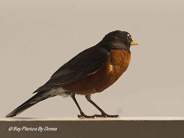 Another morning, I had an American Robin resting on my balcony. Doesn’t matter our balcony is on the third floor, it gives them a much better view! Now if all the visitors could just learn to not leave me any presents to clean off when they leave!