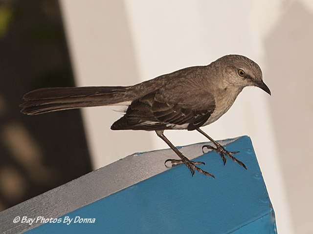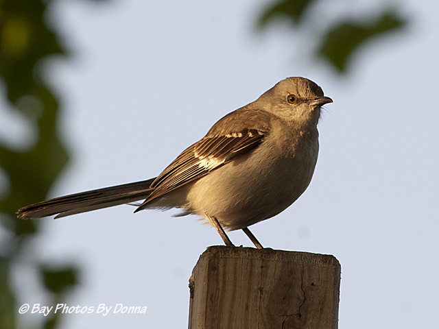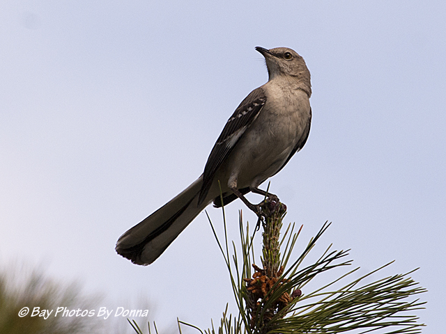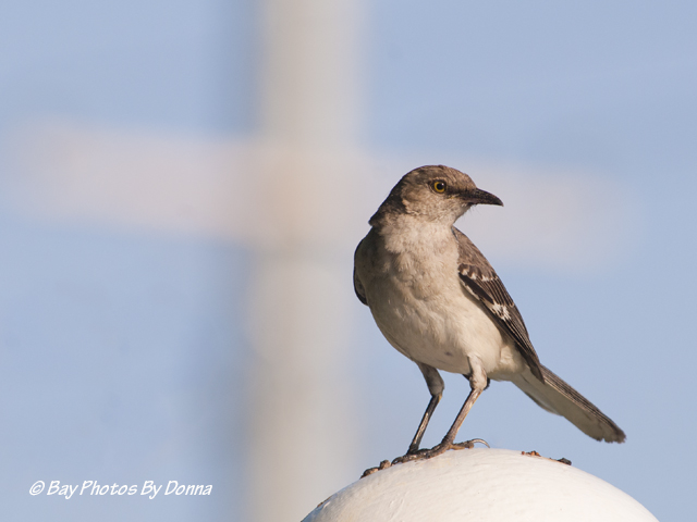 I have one final Northern Mockingbird photo to share that was taken at Lippincott’s Marina next door in their parking lot. I did not review the three photos I took until today and was surprised by the image in all three. In the background was a sailboat’s staff, which to me looks like a cross. I did not touch the image except brighten and crop it. (The ‘circle’ image on the cross is something hanging on the sailboat, not a blemish on my lens.) I thought this capture turned out special… 🙂
