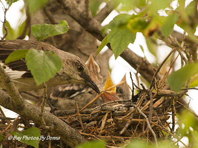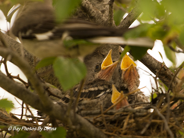 Wednesday morning I was eager to see the activity at the nest. We went from cool spring-like days earlier this week, with Tuesday starting to warm up. But Wednesday morning, we awoke to the heat-wave that has settled over the mid-Atlantic region, with temps due to soar to the mid to high 90’s, and due to feel like over 100 with the humidity. As all wildlife tries to exist through the heat, I wondered how those three little mockingbirds were going to survive all stuffed down in their nest.