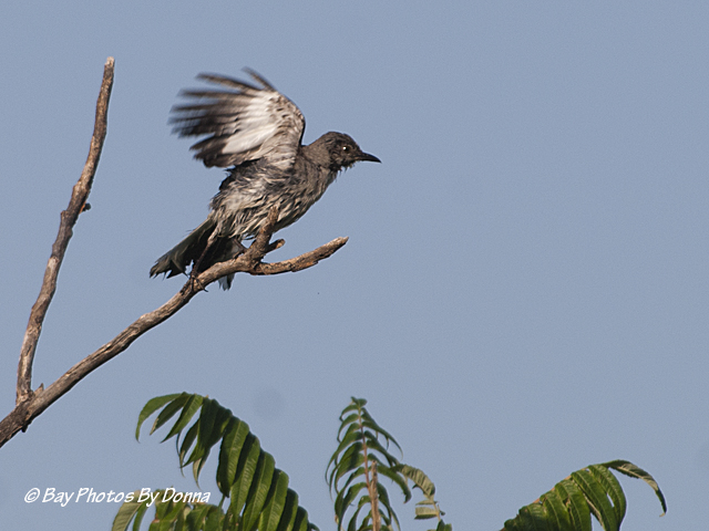 Seeking shade and soaring also provide relief. In addition, birds will puff out/spread their feathers periodically to allow any breezy circulating air reach their hot skin as another way to cool off. I have recently seen many birds doing this. The following puffed-up birds were all photographed cooling off in my backyard and community.
