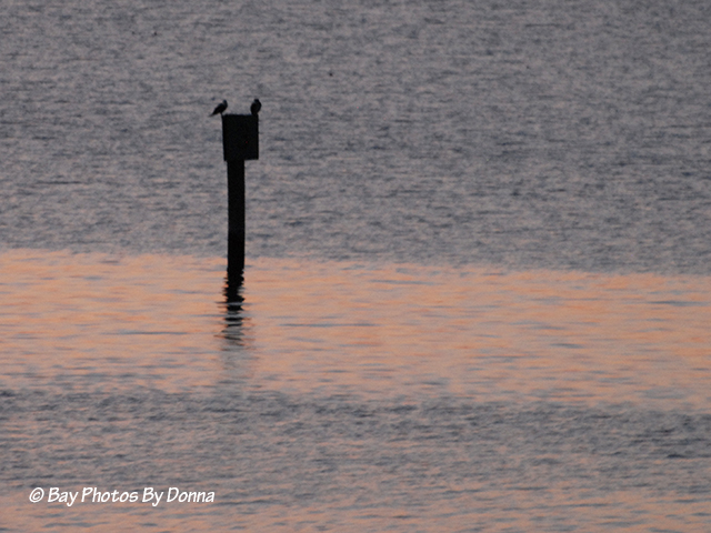 This morning before sunrise, I sighted my third Osprey in our area. I was hoping when I stepped out this morning before getting on the road to work, I’d at least ‘hear’ one. I found a pair of Osprey on Lippincott’s Channel Marker #3. And YES I heard them too! What a wonderful sound, I love it. I watched this pair for just a couple minutes before they both flew off to the left where I anticipated they went to one of the Osprey platforms erected at Osprey Point (I cannot see these platforms from my balcony, but I can when I drive by them). Sure enough, there the pair was, sitting on the platform seen closest to Rt 18 when I drove by. Their season is ready to begin! Here’s a couple shots of the pair on the channel marker.