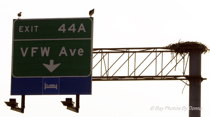 And less than a quarter-mile west of that Osprey where Exit 44A actually occurs along with another sign, we have a mated pair that have returned. I sighted the first one on March 14th and then saw both the evening of March 15th, each eating a fish. I jumped off the ramp and headed back to them. Cuz I had my cameras!! 🙂 YEA!