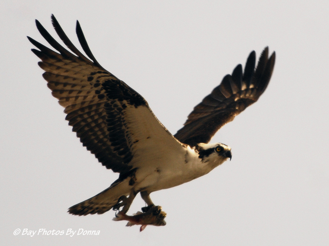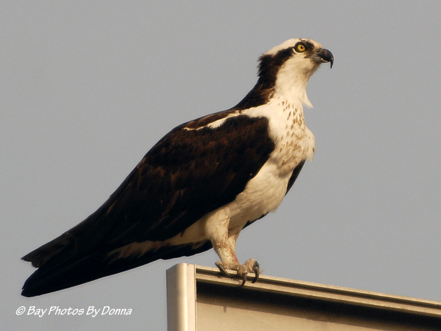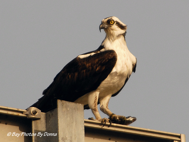 Life has me behind, more on that another time. But FINALLY I’m able to post this exciting photo & info update on the well-known Osprey that reside above a mile-stretch of high-traffic volume on Rt. 50/301 (a dual highway with three lanes each side) here where I live in Grasonville, Maryland. Last season, we had three active nests with attempts of two more that didn’t stay. Three Osprey have already returned this season along that corridor, the lonely first one I sighted March 5th is still perching/eating daily on the sign and his/her nest, waiting for a mate to return.
