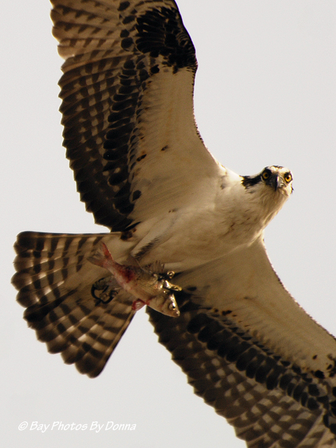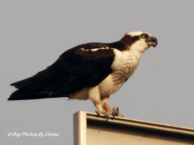 Mr. Osprey wasn’t so keen on my presence, while the Mrs. continued to eat and not care. Mr. Osprey decided to see if he could force me to leave and left the sign with his dinner.