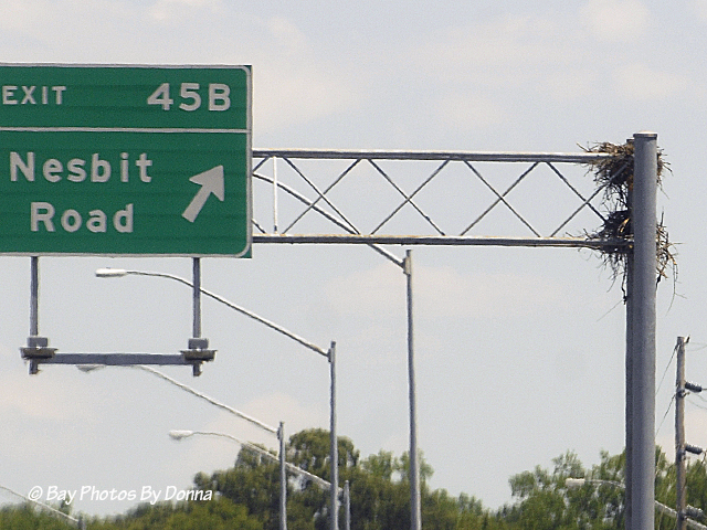On Saturday, I spotted a fifth Osprey perched on a third nest that is on the eastbound side and was new last year. This third nest took that Osprey pair all summer to make it. Both storms/winds and the difficulty of trying to get a solid base going that could withstand the weight of the nest played havoc with them, but they persisted. With all that hard work, they missed their window for mating. They had no time! The past mild winter spared a lot of damage to the nest, so if this Osprey’s mate returns, they’ll have much less work this year to start the season. I haven’t been able to photograph it this season but here’s shot of it from last summer. You can see the number of sticks that kept falling through as they tried to keep the top nest intact!