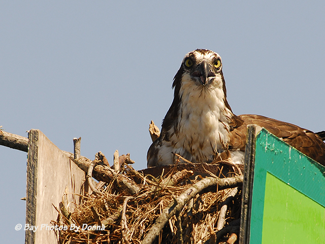 Ospreys in our area for the most part are quite tolerate of humans. You can slowly pass by them on their nests and they just curiously look at you; of course, I wouldn’t doubt they’d attack if you got right up to their nest of babies.