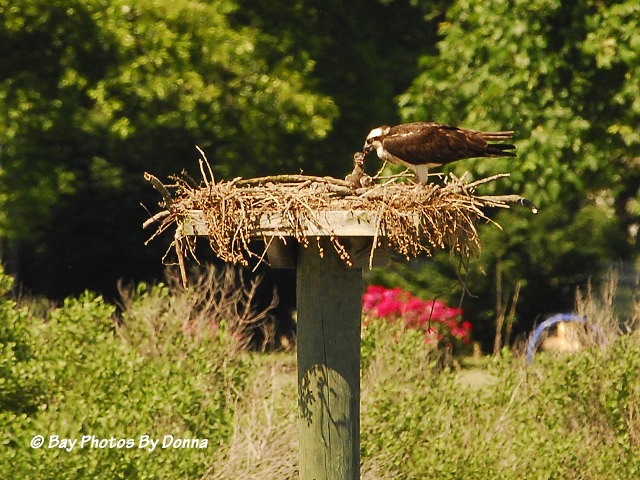 Not to fret, our area off the Chesapeake Bay is absolutely abundant with Osprey. You cannot go around the water and not see one. The male Ospreys are fishing not for themselves now but for their families too, plus they are try to keep their nests built up to keep the young chicks from falling out. It’s the male’s busiest time to say the least! And in another month, all of those chicks will be in the air as well. 🙂