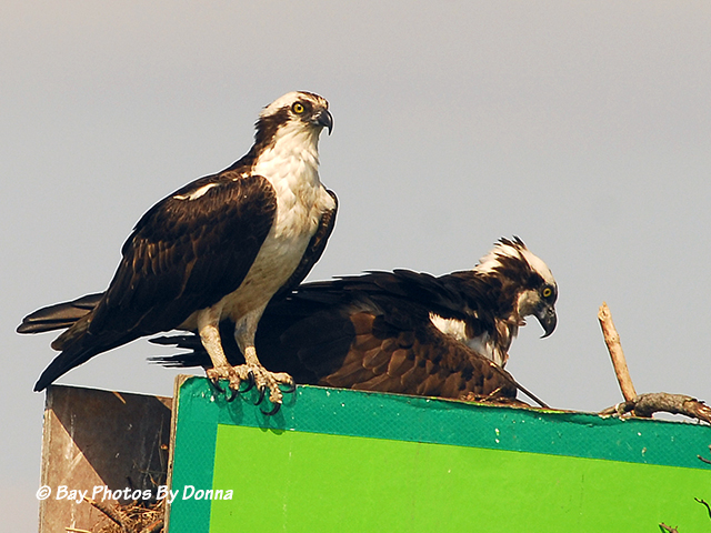 If you’ve been following my posts on our community’s osprey nest platform and the possible residency of a pair of Osprey, that pair has stopped altogether in trying to build a new nest this season due to another Osprey pair who have been stealing from our platform the sticks that our pair has been laying. They still reside mostly on Lippincott’s channel marker but do visit our platform for a perch or to chase away another Osprey thinking of resting there. So they seem to think they still own it. Maybe next year they both will return and give it their all in total control of their nest building, and our community will have an Osprey family to celebrate and enjoy!