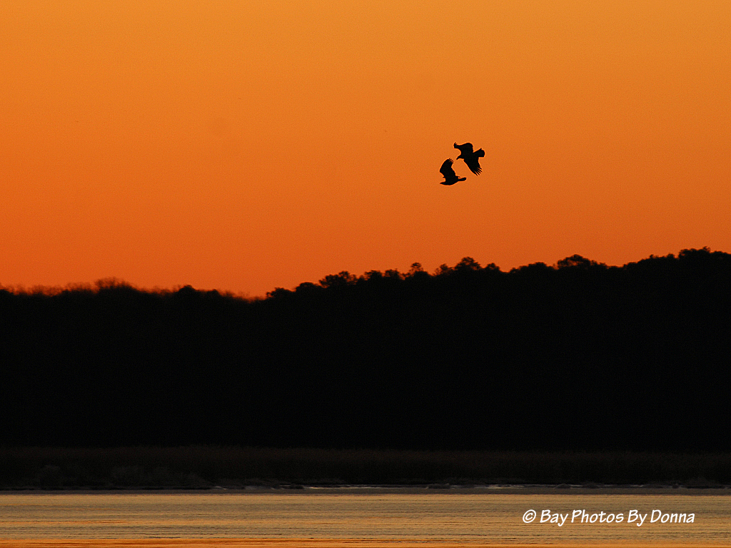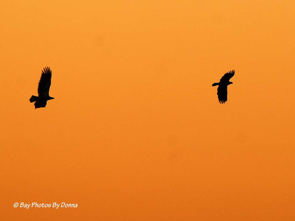 The pair never did come close to me, so I had to crop a bit much. Still I hope you enjoy this series of a little Eagle love at sunrise in silhouette.