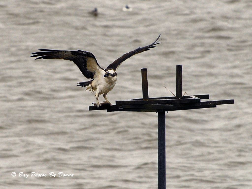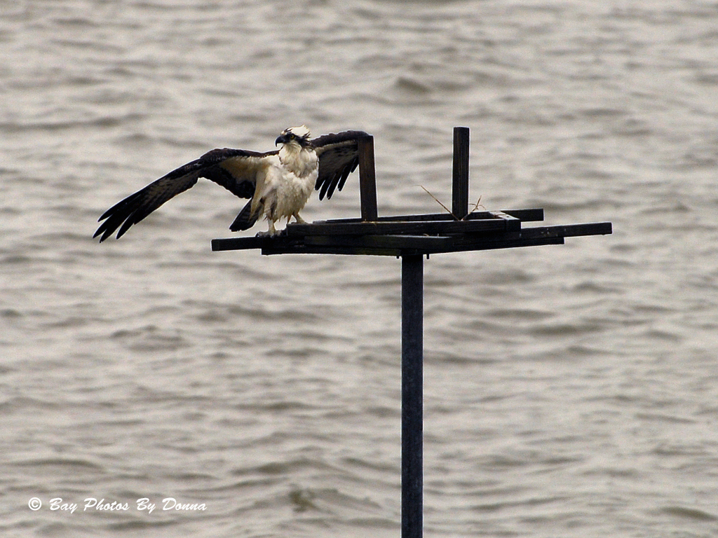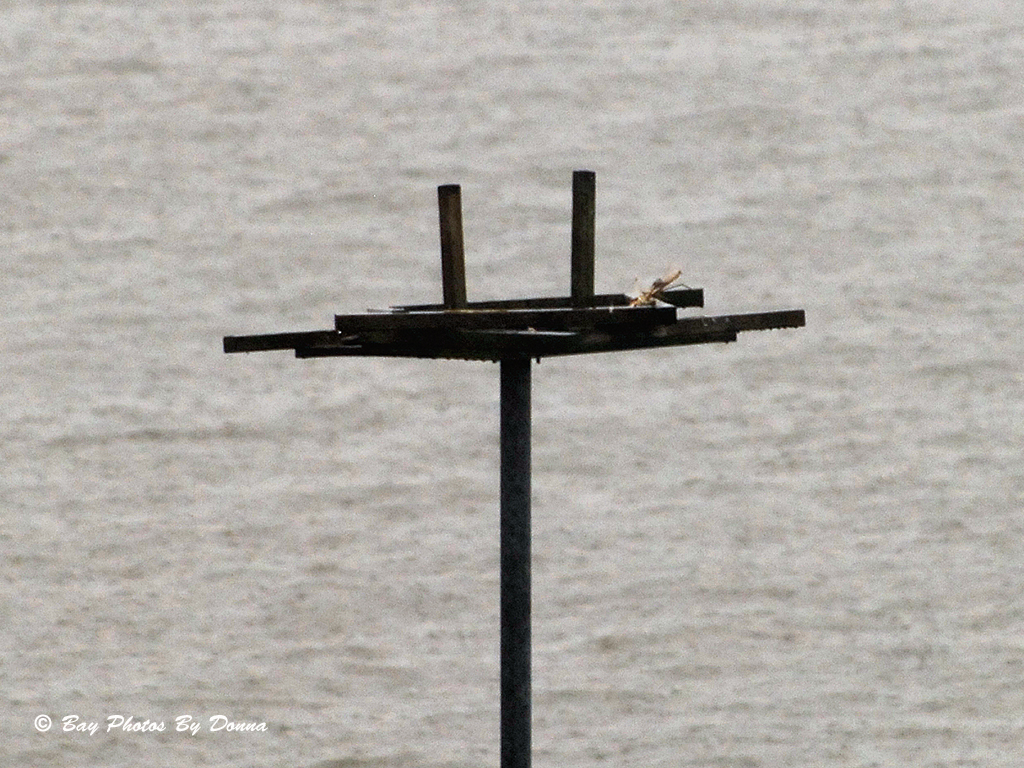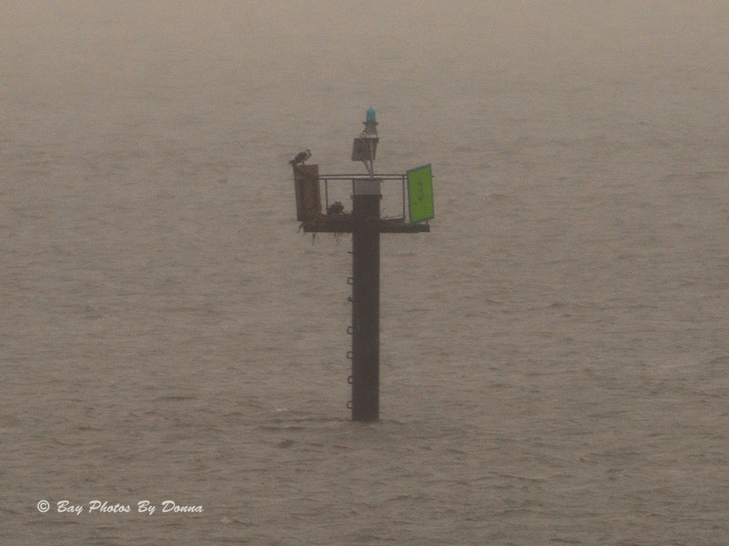 No Osprey sightings and I had my hands full unpacking. The next foggy morning, I was happy to discover the Osprey pair had successfully returned to the southend Kent Narrows Channel Marker #3, already protecting a nice size nest.