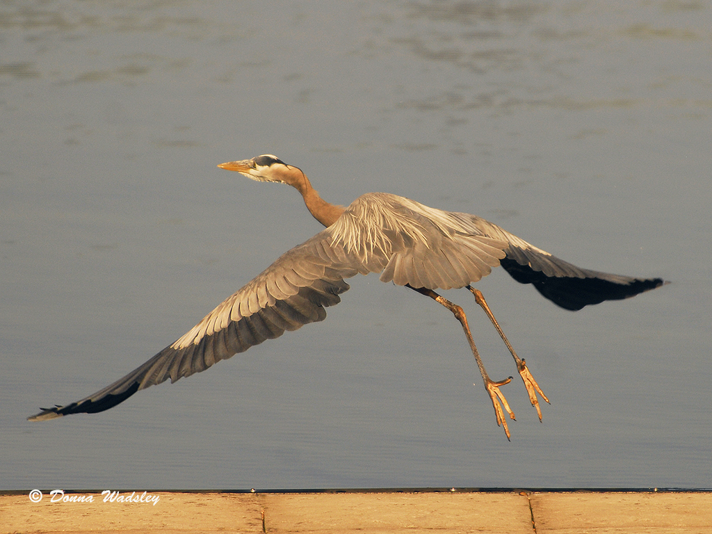 One of my favorites, the beautiful Great Blue Heron stands about 4 feet tall, with a wingspan up to 6 feet wide. Yet the adult weighs only about 5 lbs. because their bones are hollow. That surely helps to get their body up and in flight!