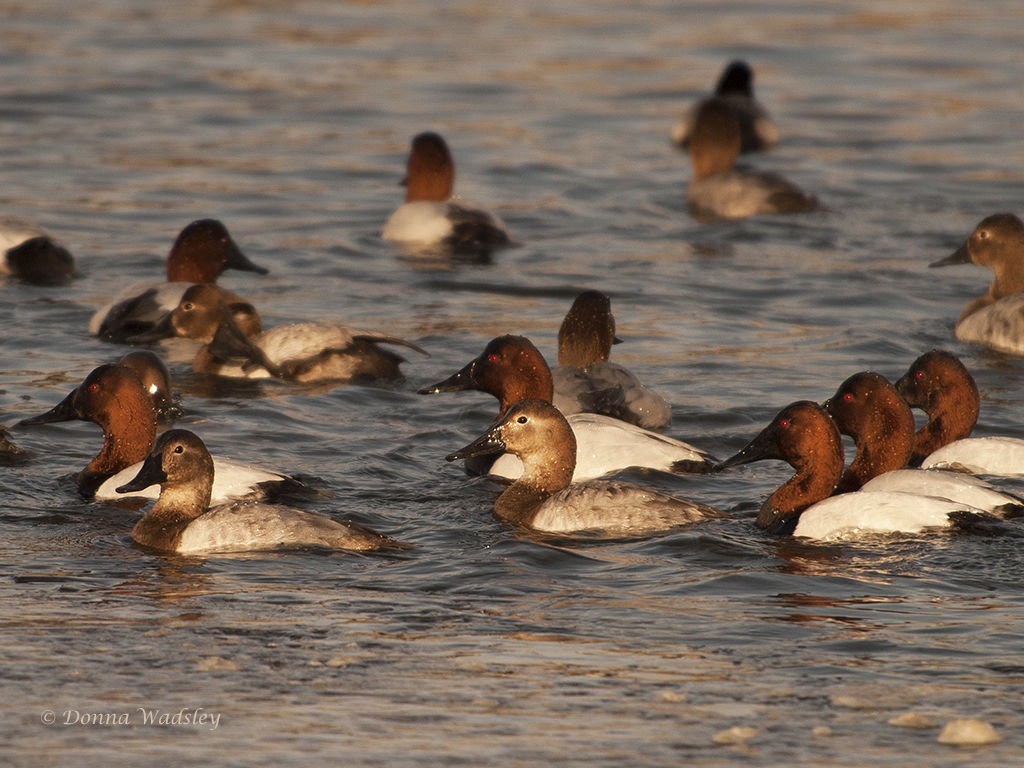 To continue from my last post about all those ducks feeding around the KIYC Marina piers and bulkhead at Kent Narrows, I scored many great shots of the Canvasbacks, who outnumbered the rest of the ducks. On occasion, the sun would peak out.
