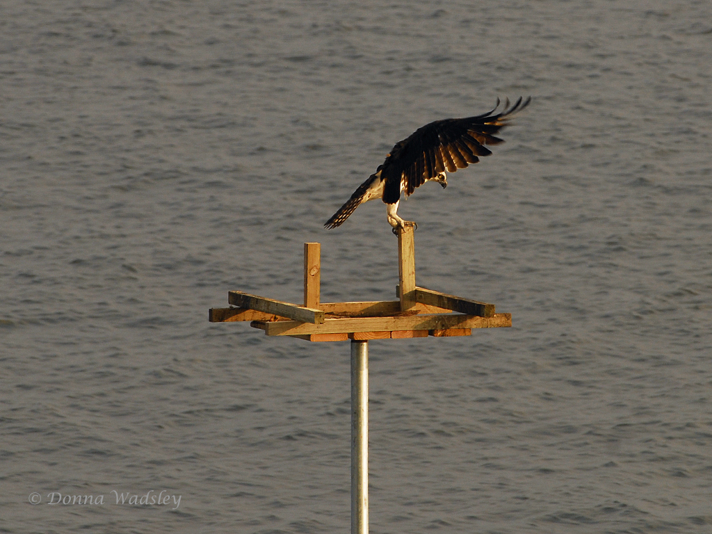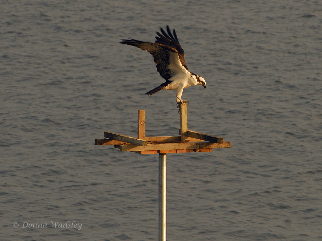 Male Osprey from CBEC’s nest platform, dropping on to our Oyster Cove Osprey platform.