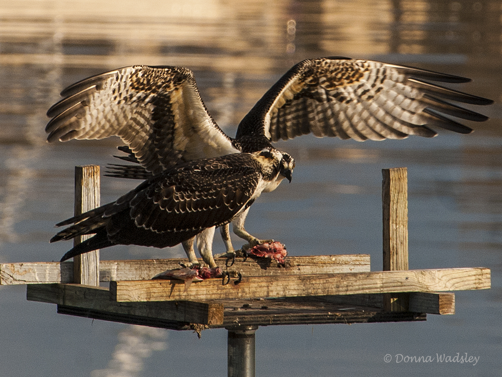 OspreyTeens trying to share nest platform while eating.