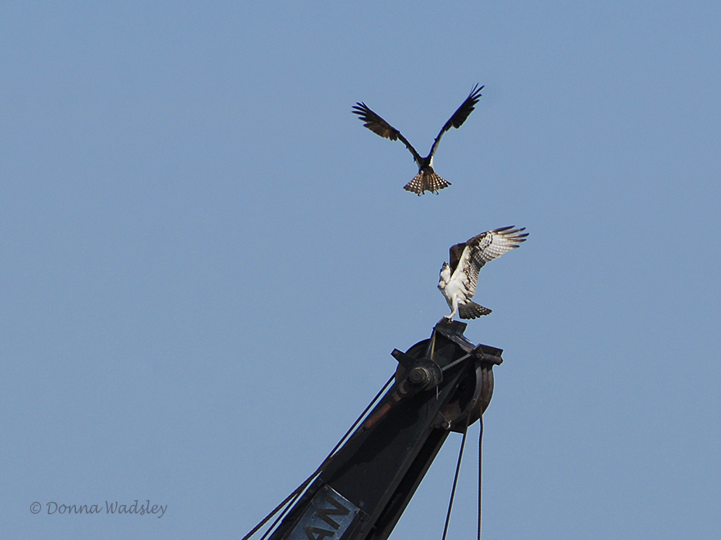 Beau defending his perch against an intruding area Osprey.