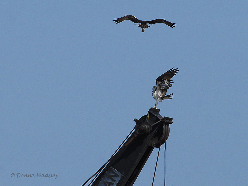 Beau defending his perch against an intruding area Osprey.