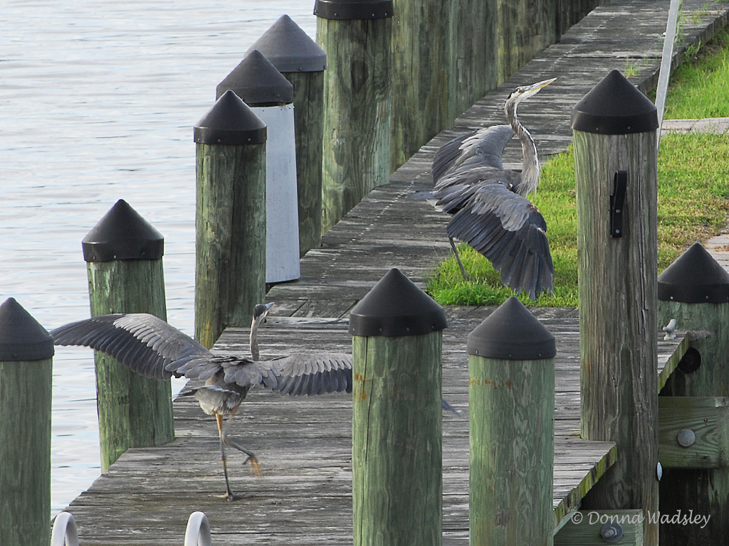 Great Blue Herons fighting over territory
