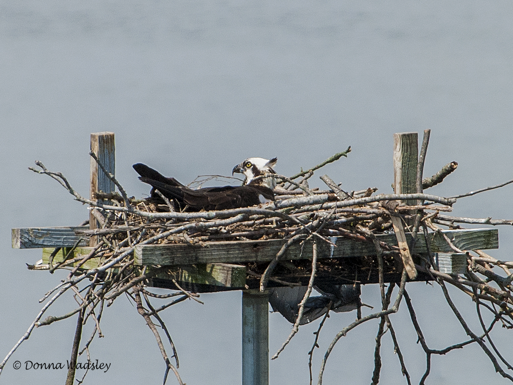 Beau snuggles down in the nesting cup while keeping an eye on Bella.