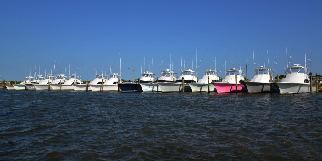 Half of the charter boats at the marina