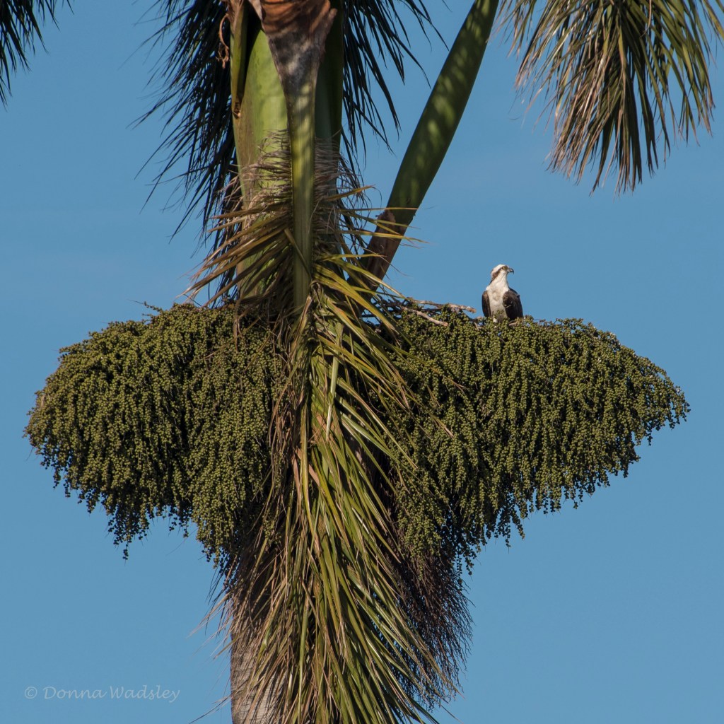 Osprey nest in palm tree berry branches