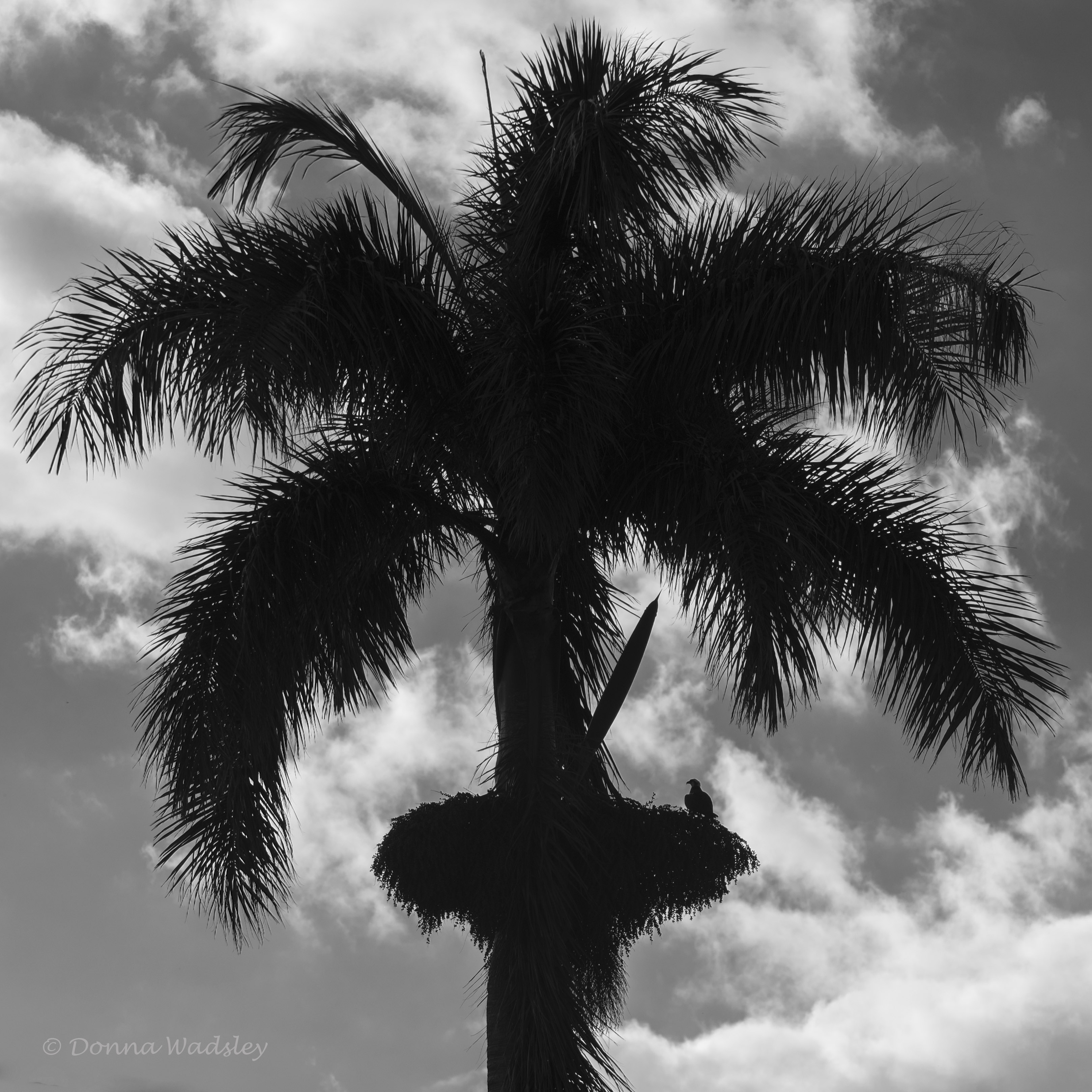 Osprey nest in palm tree berry branches