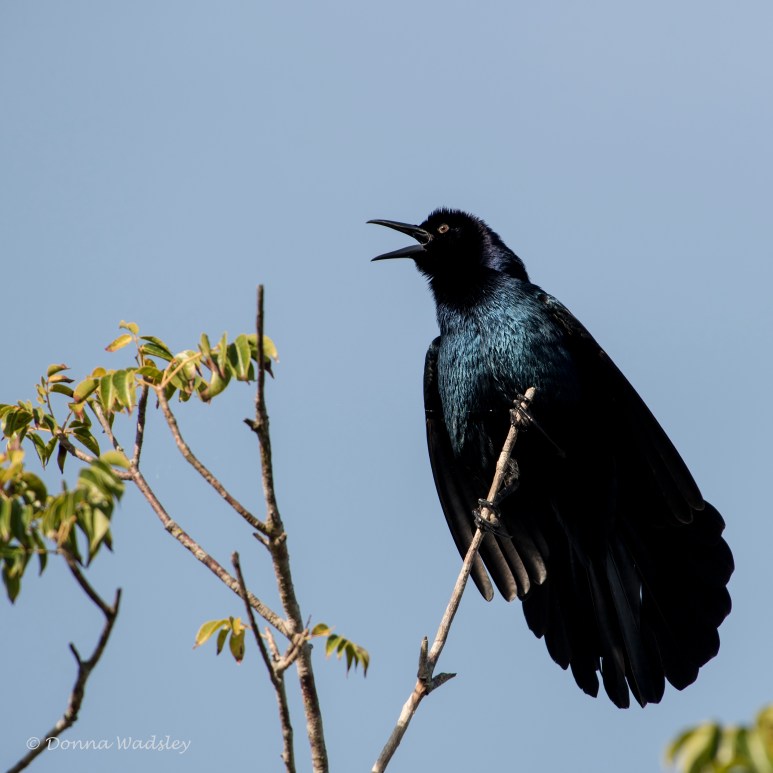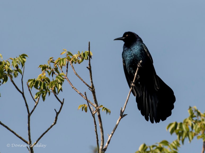 With the lighting just right, the black male will shine with iridescent colors of purples, blues, and greens.